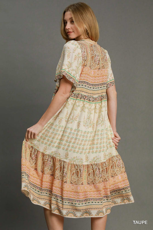 VESTIDO MIDI CAFÉ/DURAZNO